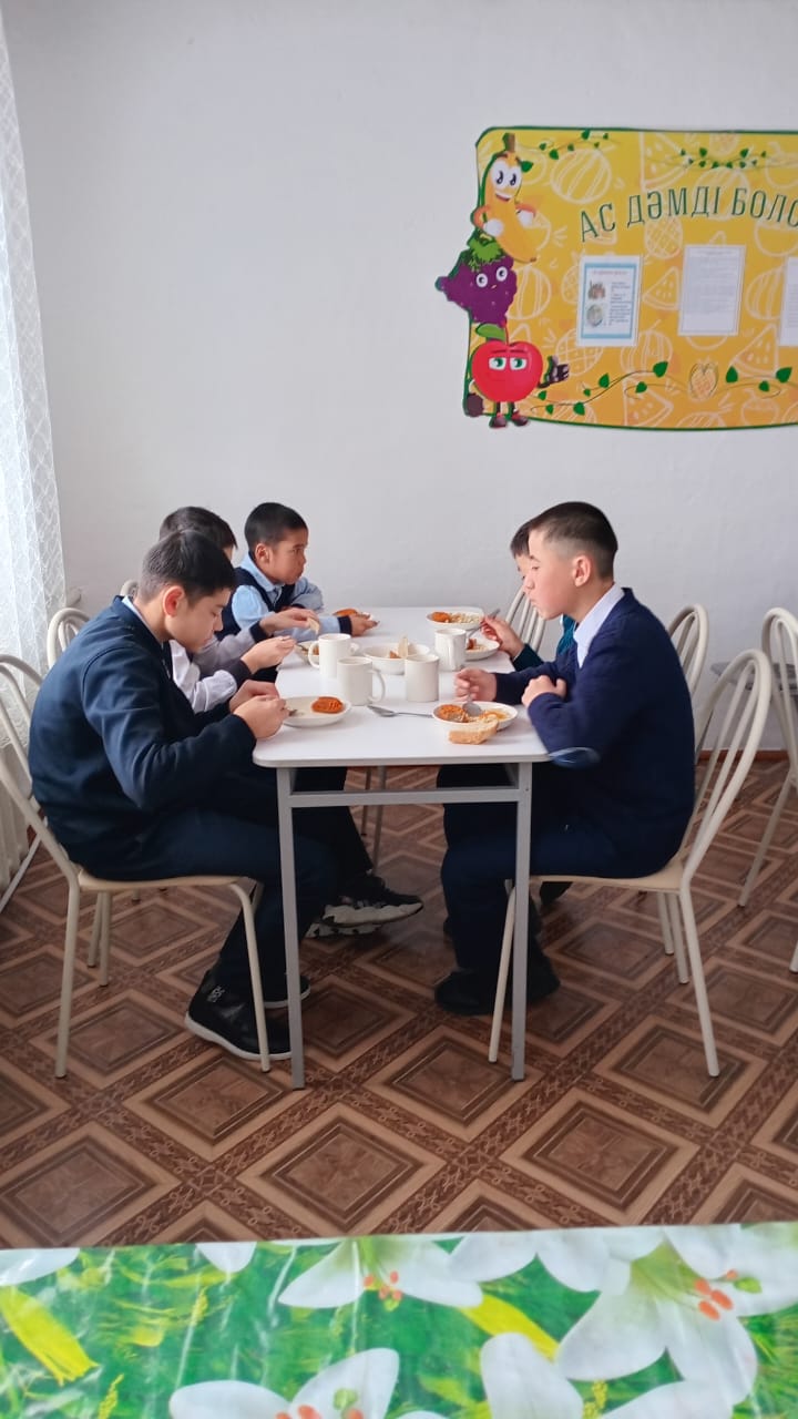 Қайырлы күн 2025 жылдың 1 кварталында мемлекеттік қызмет көрсету бойынша әлеуметтік осал топтың 8 оқушысына тегін тамақтану жұмысы жалғасуда